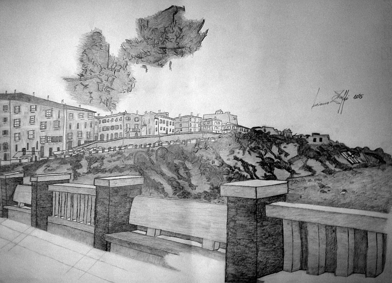 Luciano Zuffi piazza bovio 2015, disegno a matita.