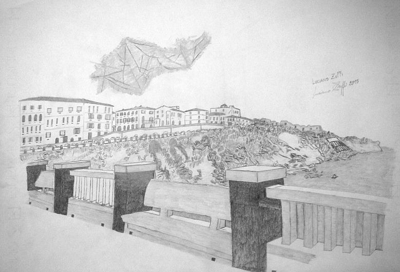 Luciano Zuffi Piazza Bovio , disegno a matita.