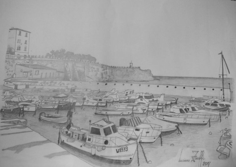 Luciano Zuffi Porticciolo di Marina disegno a matita.