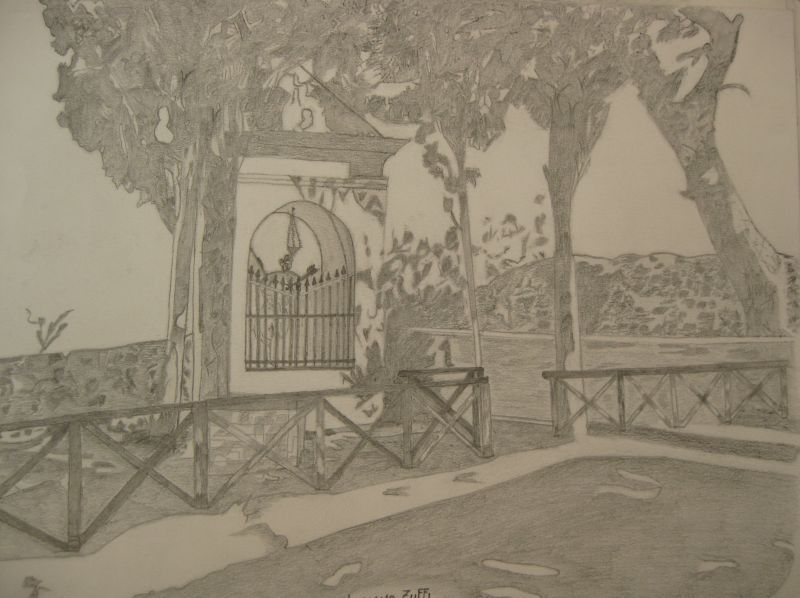 Luciano Zuffi edicola a Baratti , disegno a matita.